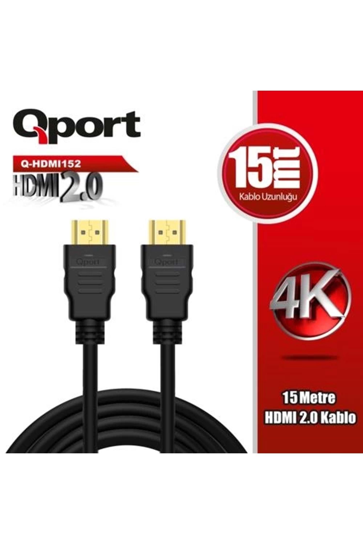 KABLO QPORT Q-HDMI152 HDMI 15MT 2.0V 3D/4K/Altın Uçlu/Parazit ÖNLEYİCİ