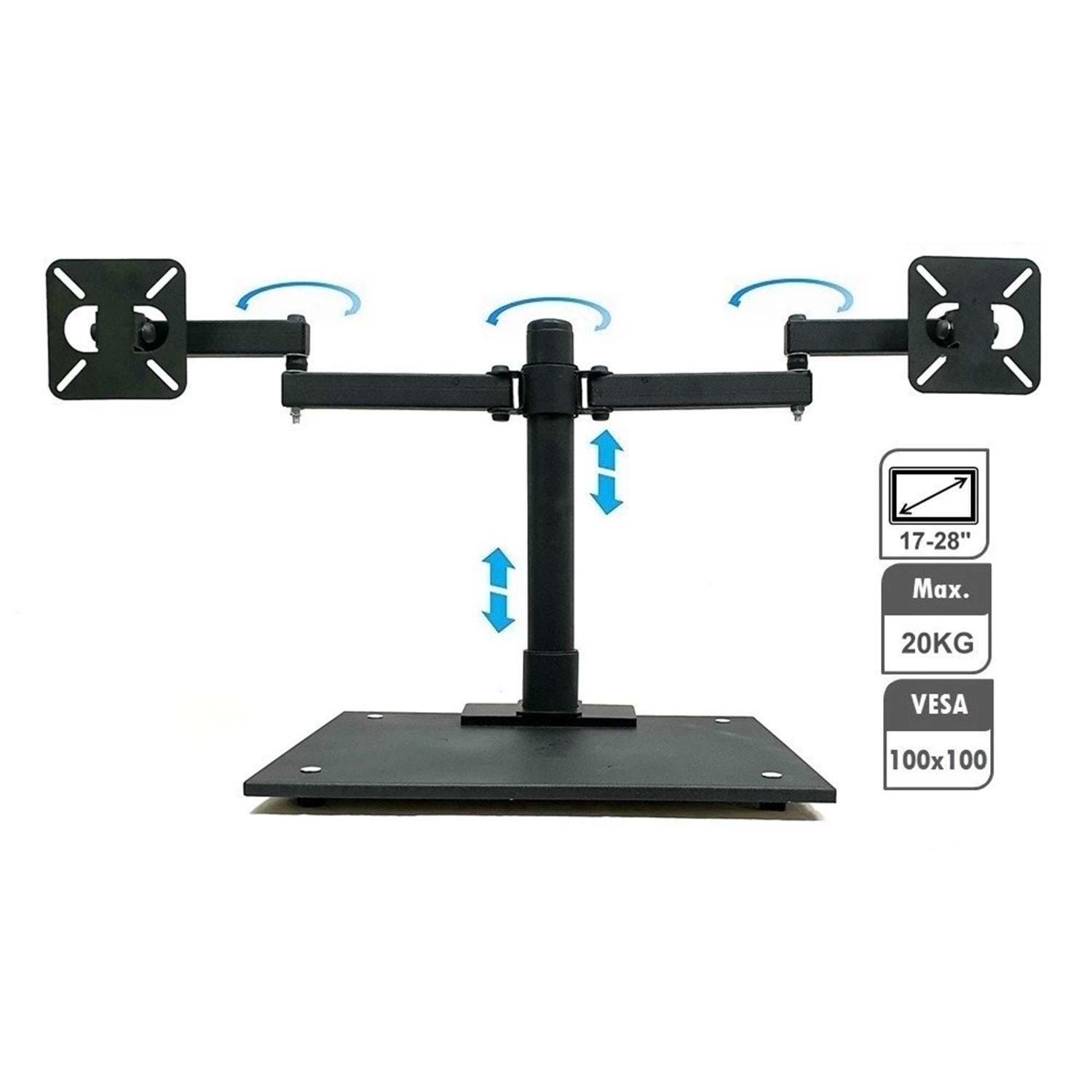 17-28'' Portatif Çiftli Monitör Masa Üstü Askı Aparatı