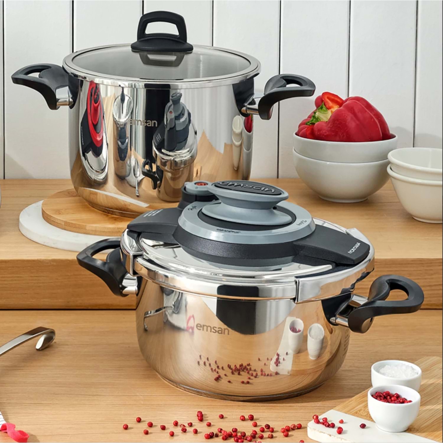 2 tencereye de uyumlu kullanılabilecek gibi tasarlanmış düdüklü kapak ve cam kapak sayesinde 2 farklı düdüklü ve 2 farklı tencere olarak kullanılabilir.