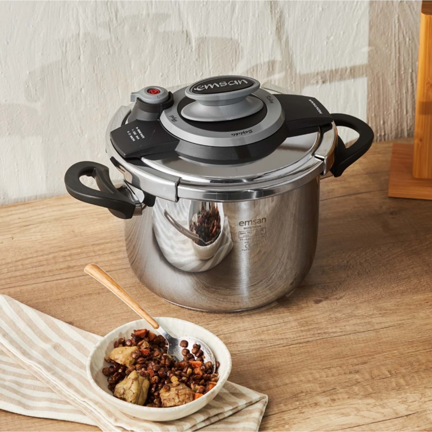 Emsan Montana 6 Litre Düdüklü Tencere, mutfağınızın yeni gözdesi olacak! Yüksek basınçta pişirmesi sayesinde hem zamandan hem de enerjiden tasarruf edebilirsiniz. Isıyı her tarafa eşit olacak şekilde dağıtarak yemeklerinizi tam kıvamında pişirir. Paslanmaz çelik yapısı sayesinde dayanıklı ve uzun ömürlüdür. Emniyet sistemi ile güvenli bir kullanım sunar. Ergonomik ve dayanıklı kulpları sayesinde rahatça taşınabilir. Bulaşık makinesinde yıkanabilen yapısı ile oldukça kullanışlıdır.