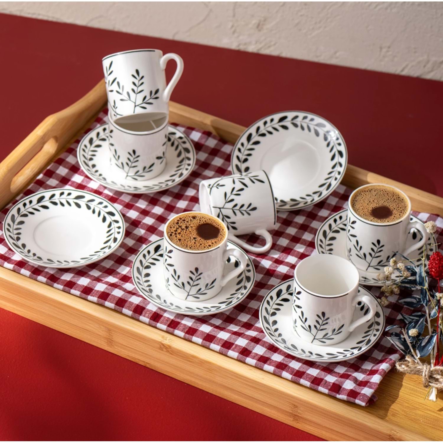 EMSAN IVY WREATH 6'LI KAHVE FİNCANI, SİYAH