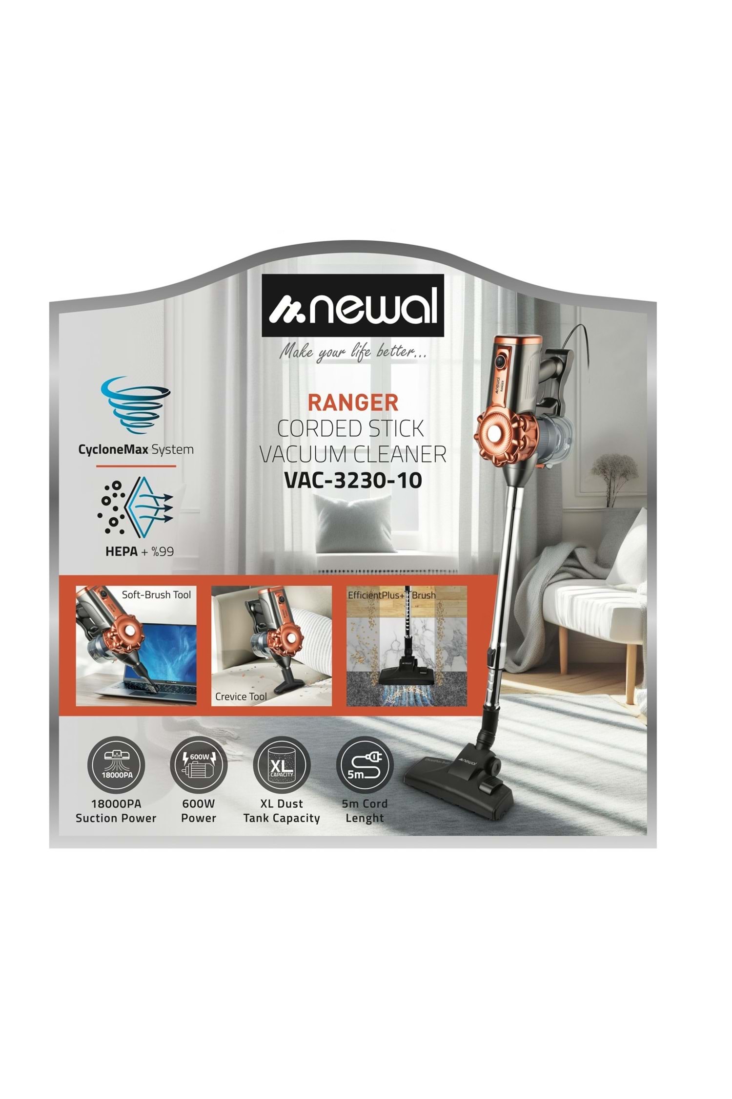 Newal VAC3230/10 Dikey Elektrikli Süpürge 600W