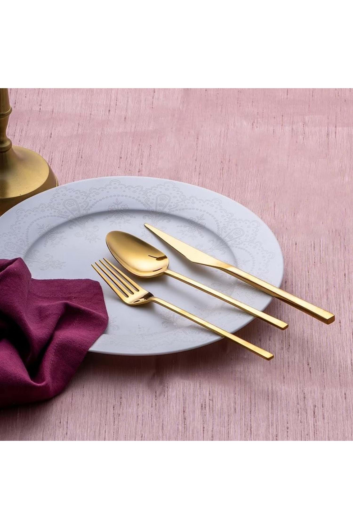 Emsan Alba 18 Parça Parlak Gold Yemek Kutulu Çatal Kaşık Bıçak Takımı
