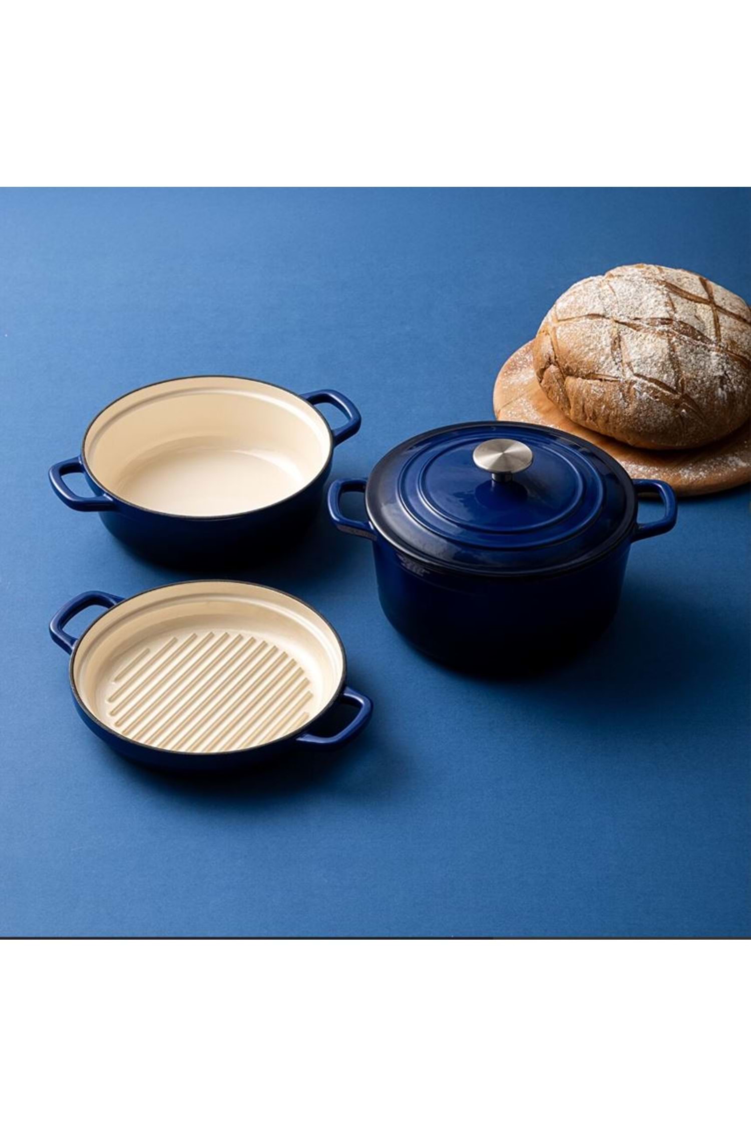 Emsan Fortino Cast Döküm Tencere Seti Lacivert 4 Parça 22 cm