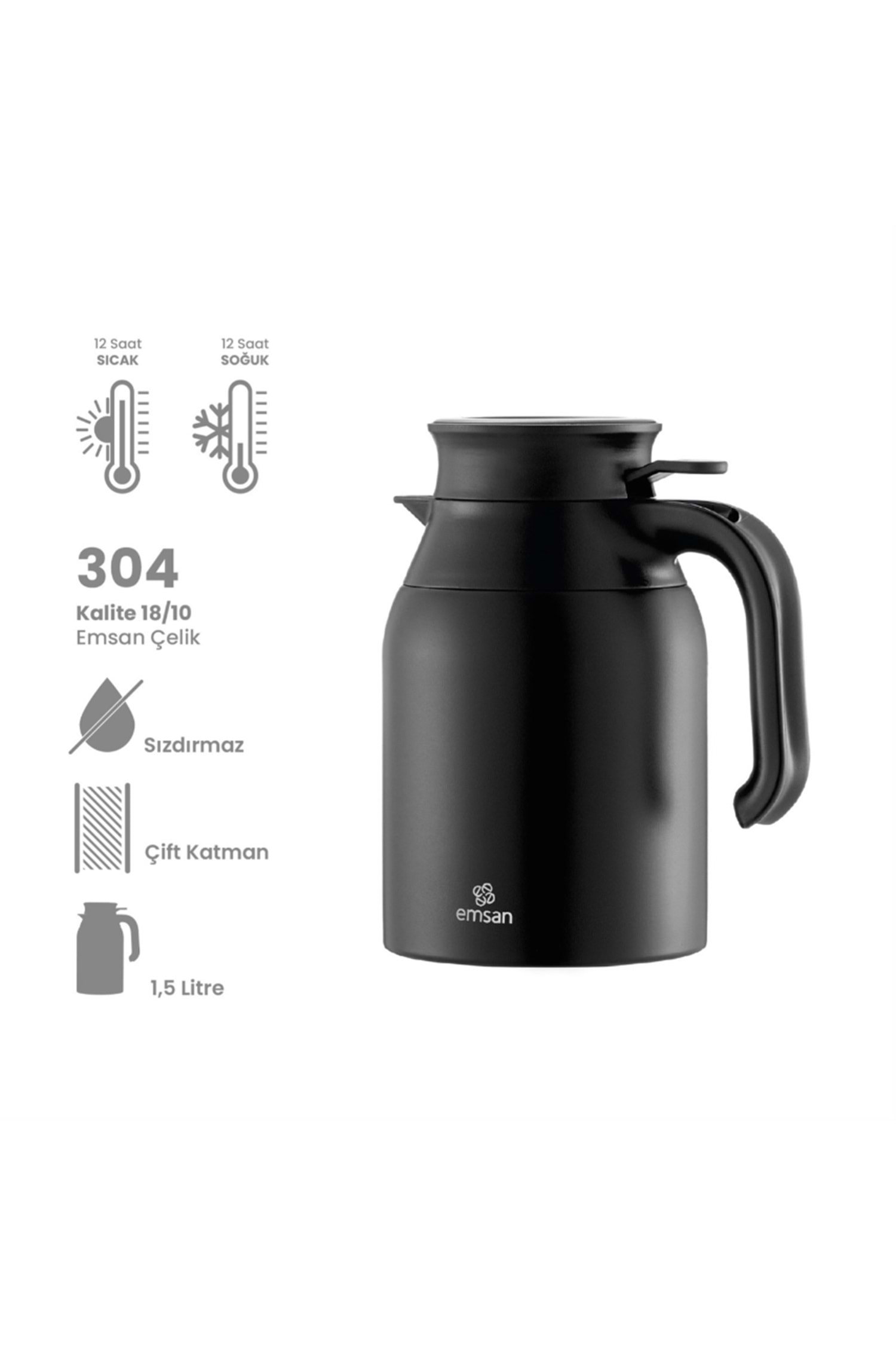 EMSAN CLASS TERMOS, 1,5 LT, SİYAH
